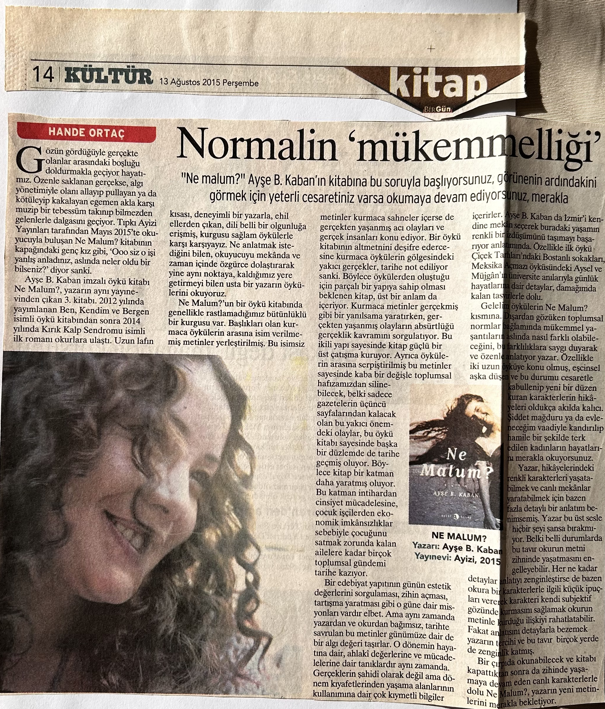 Normalin ‘Mükemmelliği’ (The ‘Perfection’ of the Normal), Review of Ayşe B. Kaban’s book in Birgün Kitap weekly literature issue, August 2015